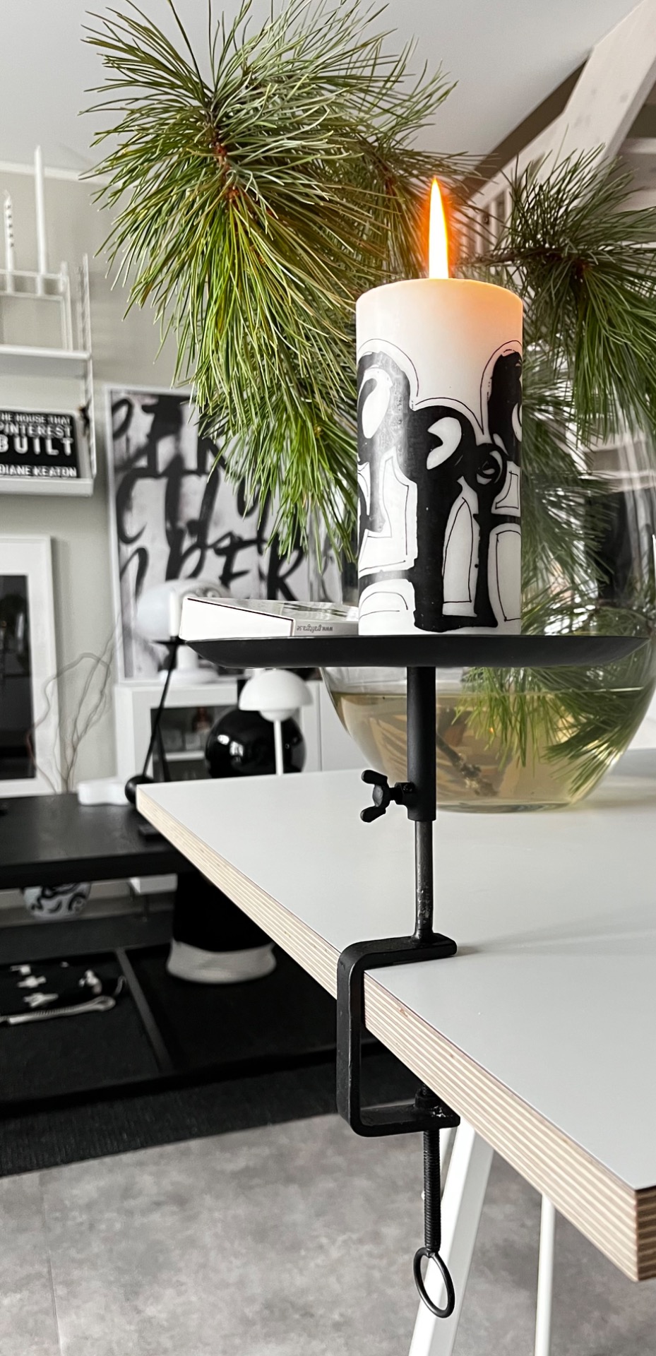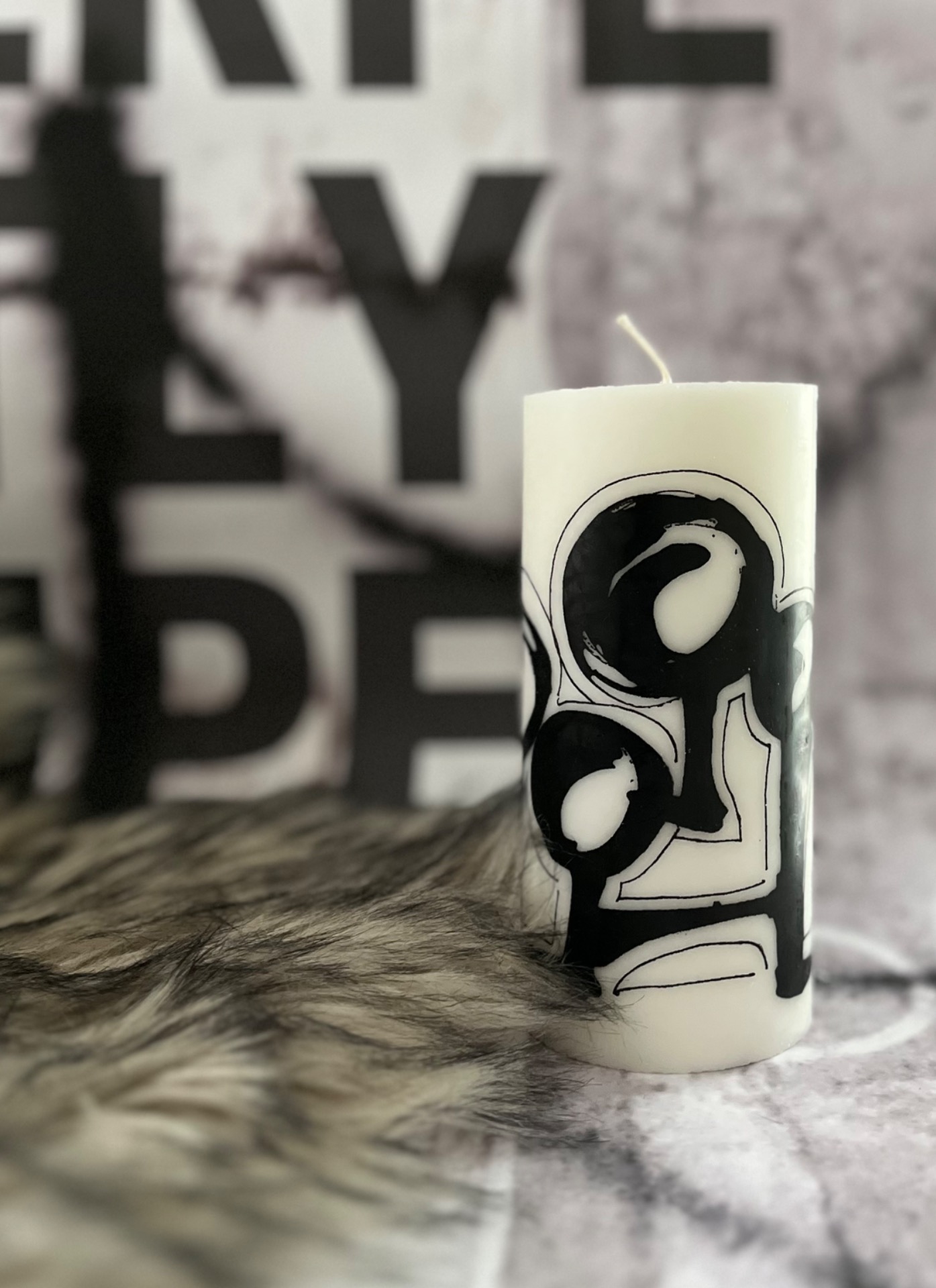 Blockljus 100% stearin Storl 7x15cm Genomfärgad i färg vit med svart dekorBrinntid ca 50 hSVANEN märkt