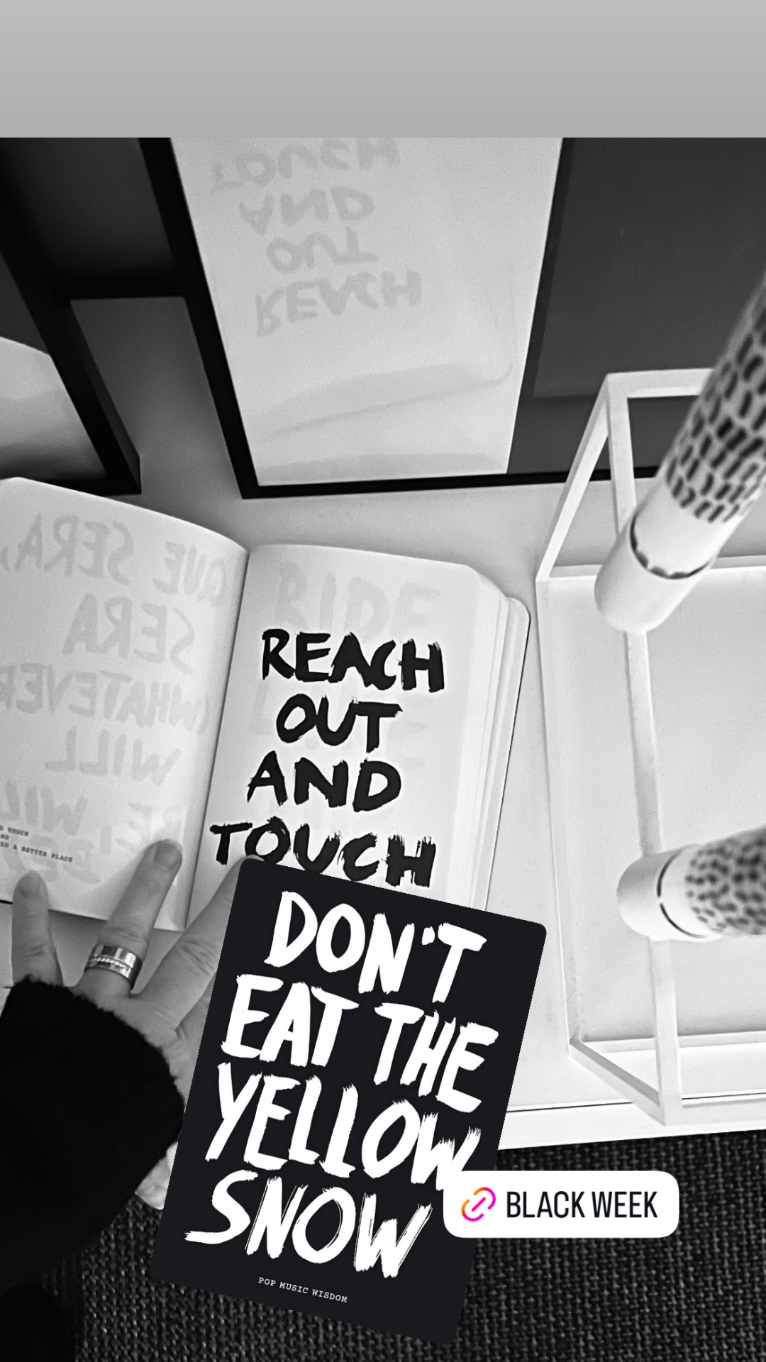 En stilren och estetiskt utformad bok med attityd som passar perfekt som coffeetable book, proppfull med visdomsord hämtade ur kända låtar.
