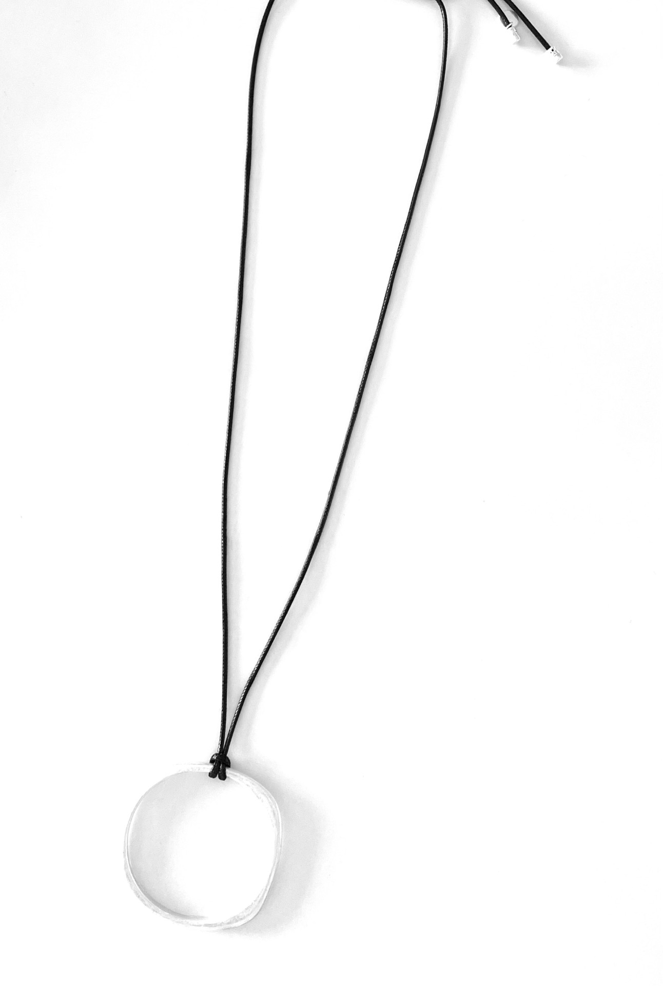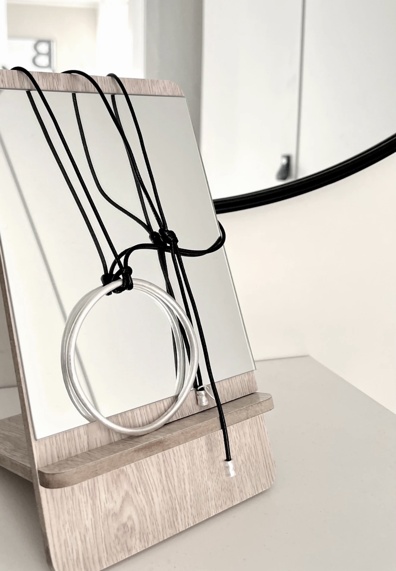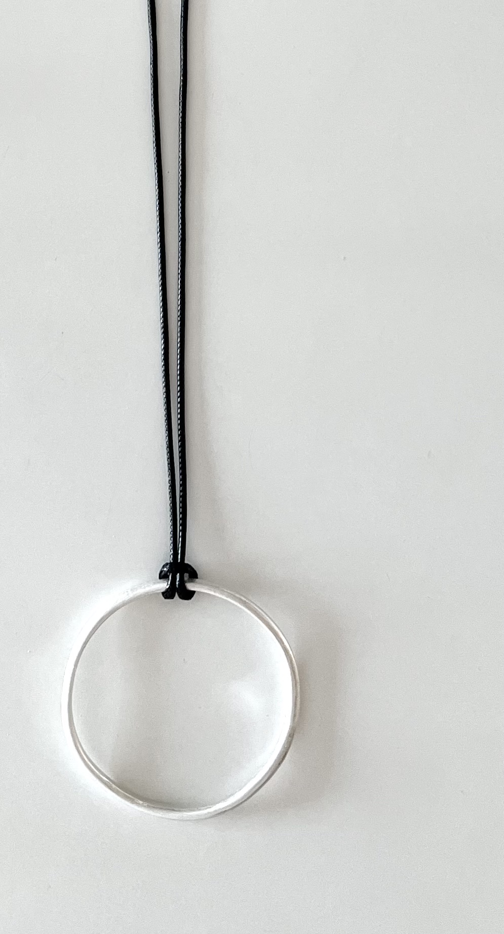 Material Nickelfri Metall/Veganskt läderVikt 50gØ 7cmLängd på bandet är omkr 105cm, justeras in till önskad längd