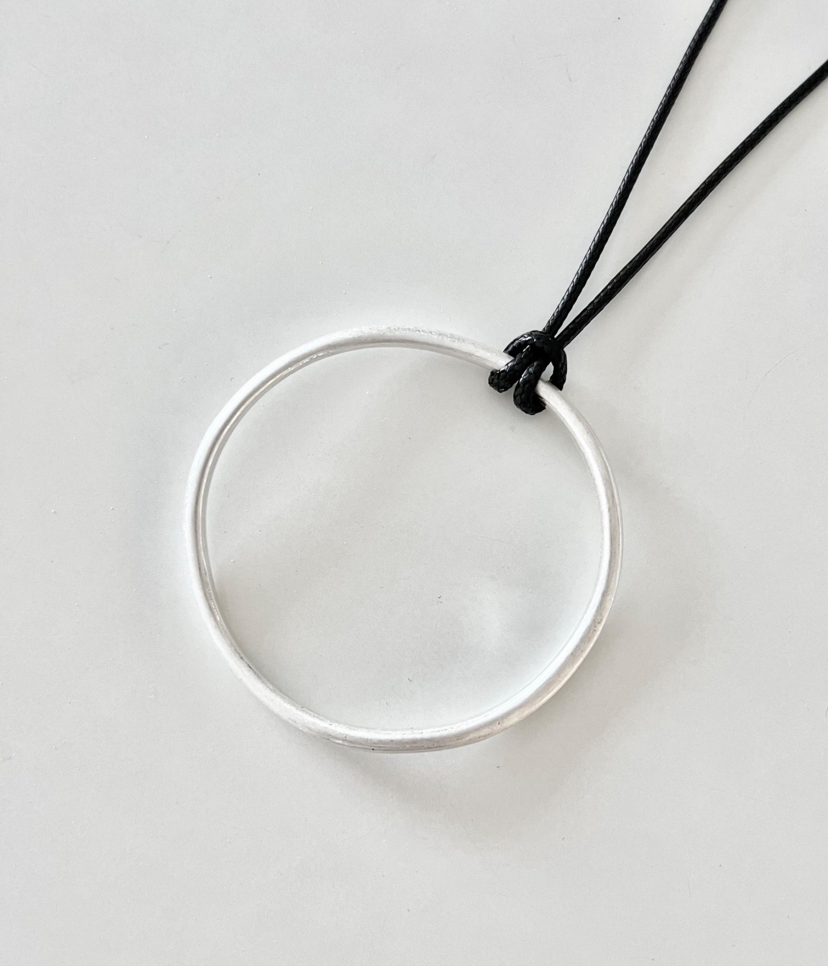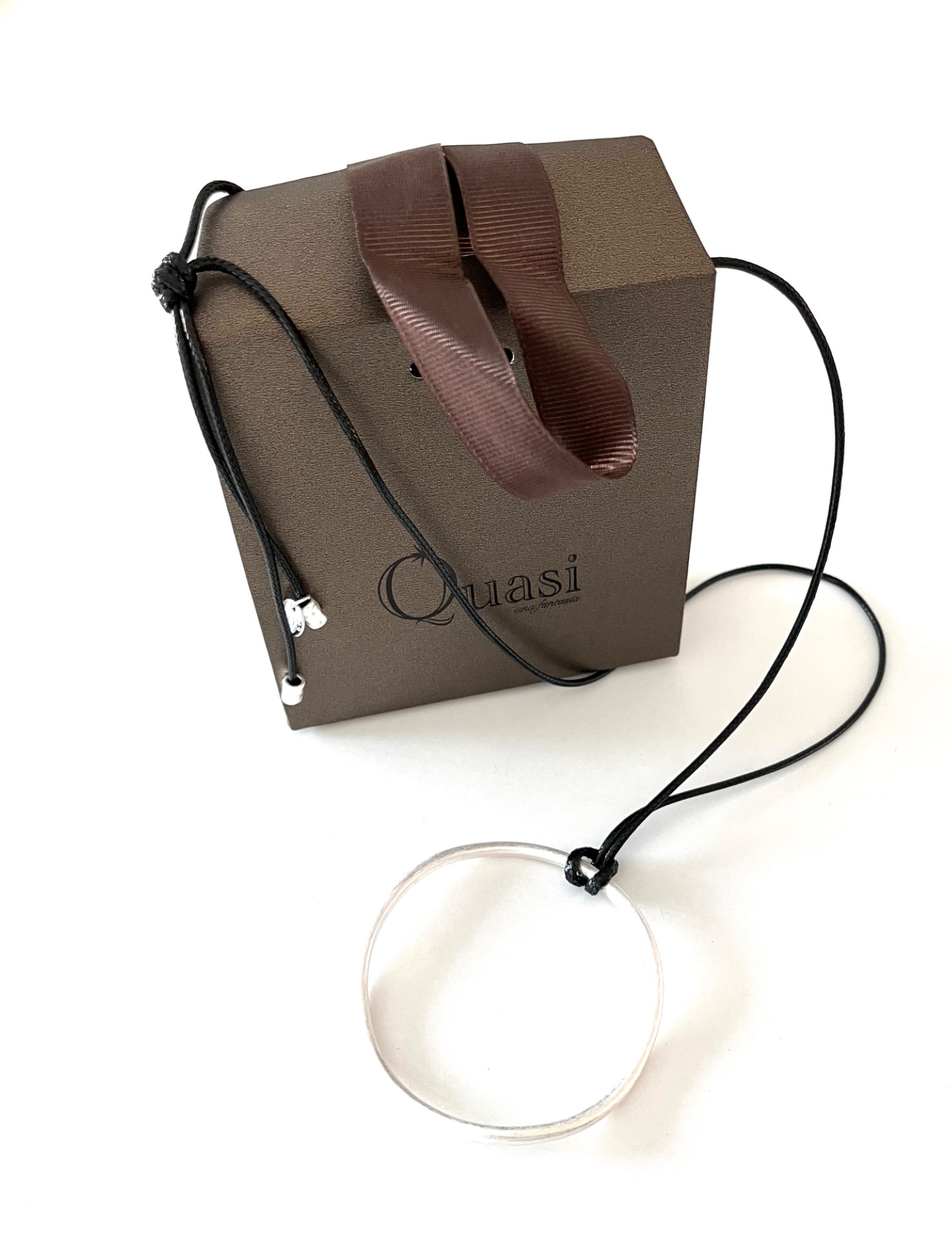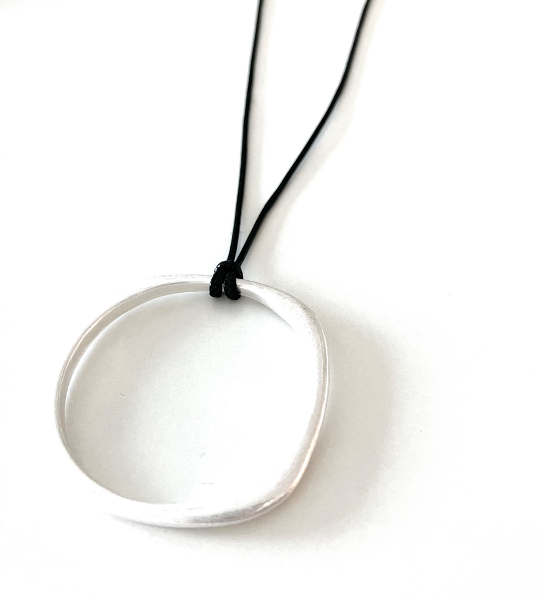 Material Nickelfri Metall/Veganskt läderVikt 50gØ 7cmLängd på bandet är omkr 105cm, justeras in till önskad längd