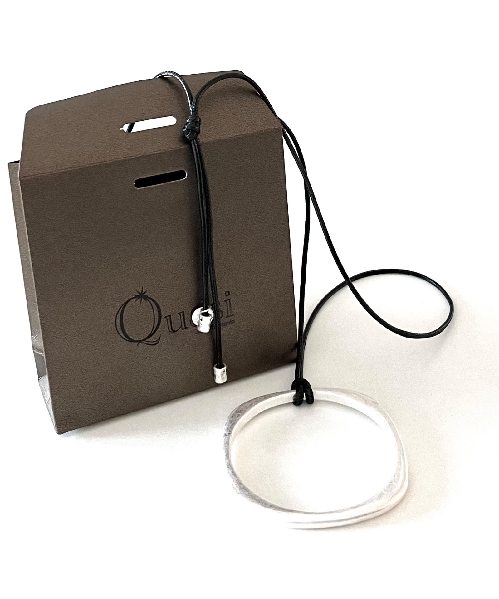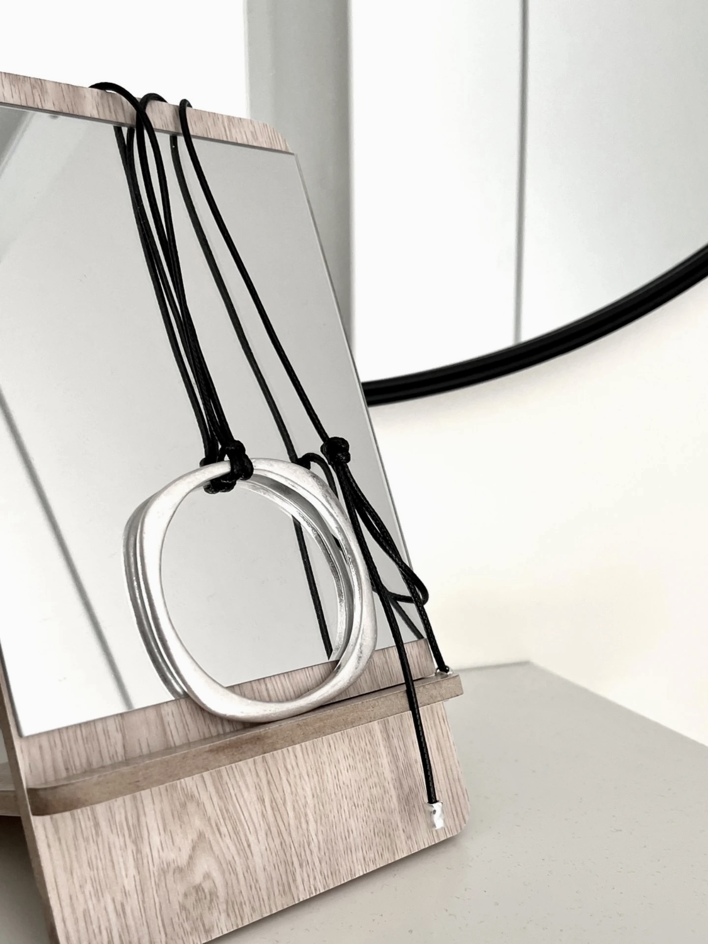Material Nickelfri Metall/Veganskt läderVikt 50gØ 7cmLängd på bandet är omkr 105cm, justeras in till önskad längd