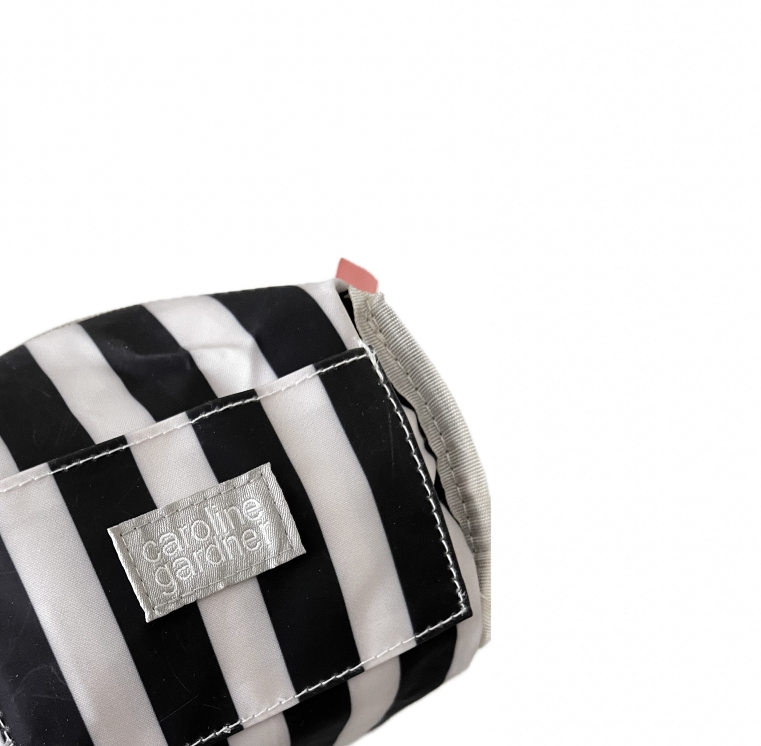 Den har ett praktiskt avtorkningsbart randigt foder i svart/vitt, samt en innerficka som gör den idealisk för att förvara dina favoritsminkprodukter och även idealisk att ha med sig på resor med sin behändiga storlek.