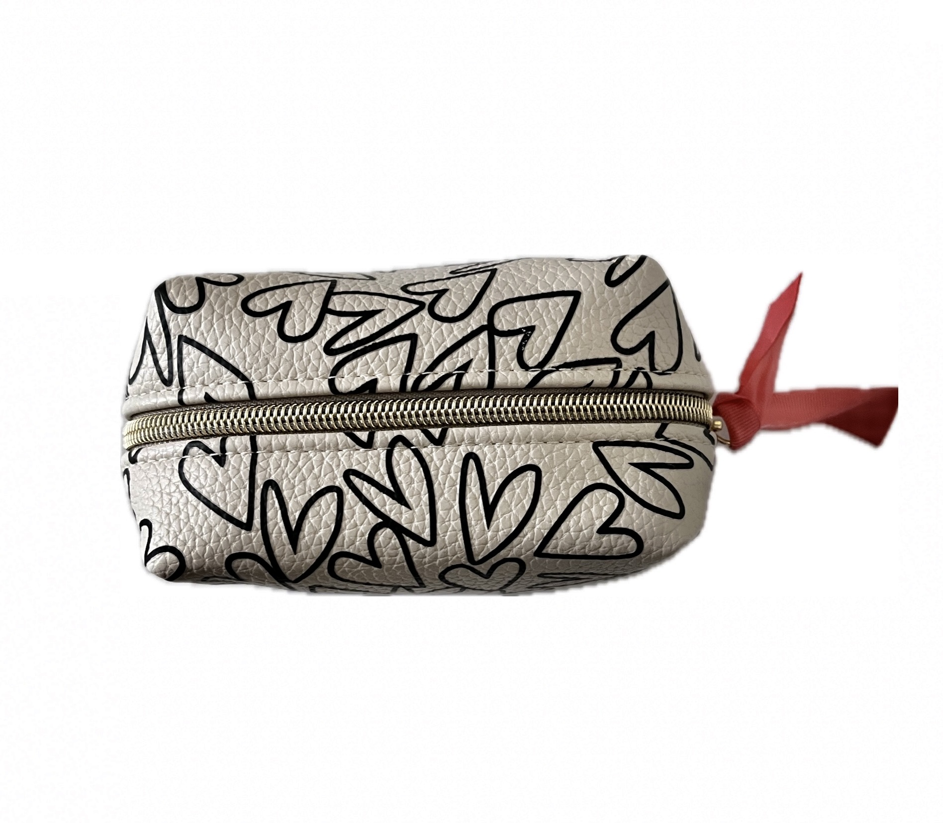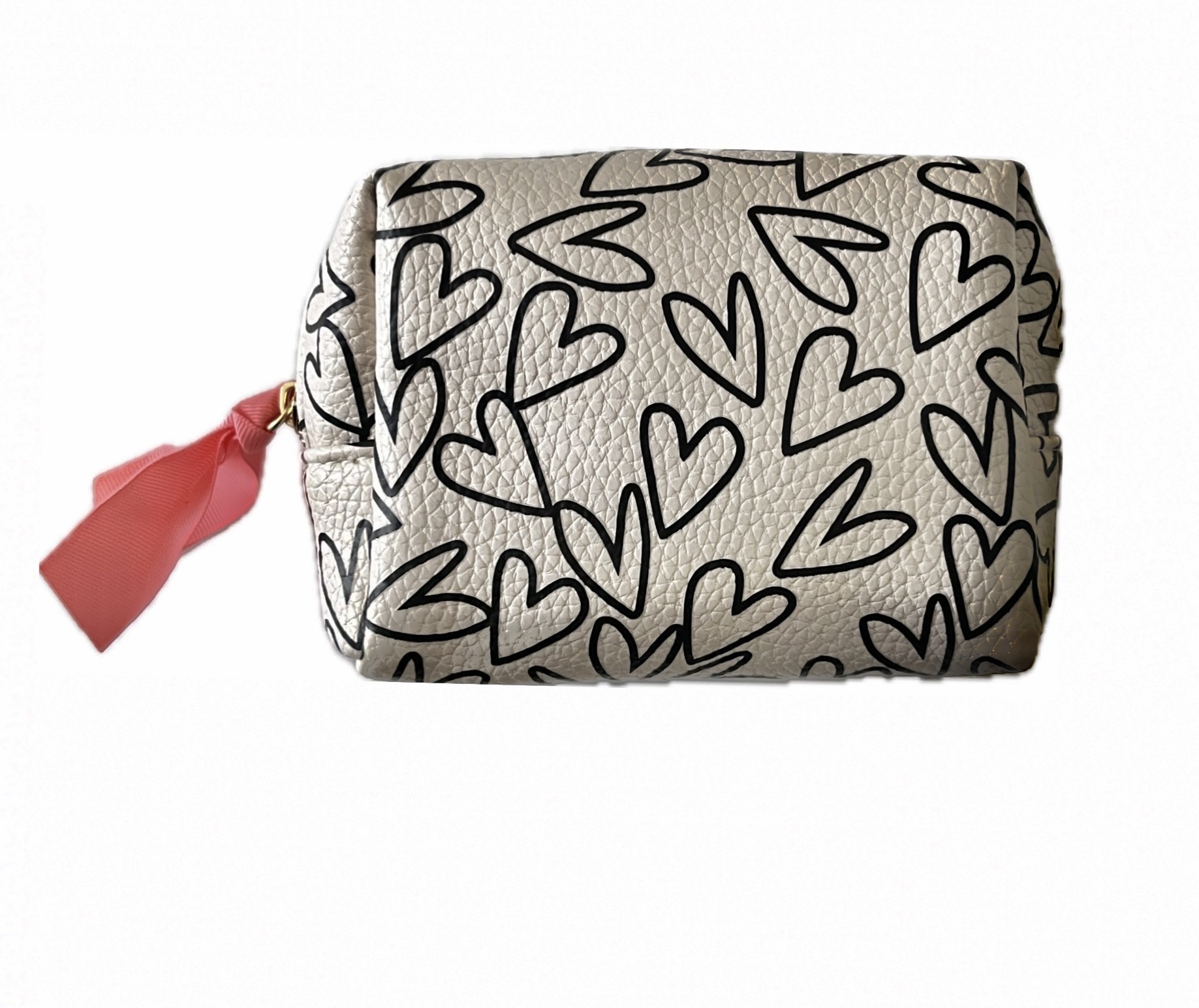 Liten Sminkväska med handtryckt mönster av Carolines tidlösa och monokroma hjärta.