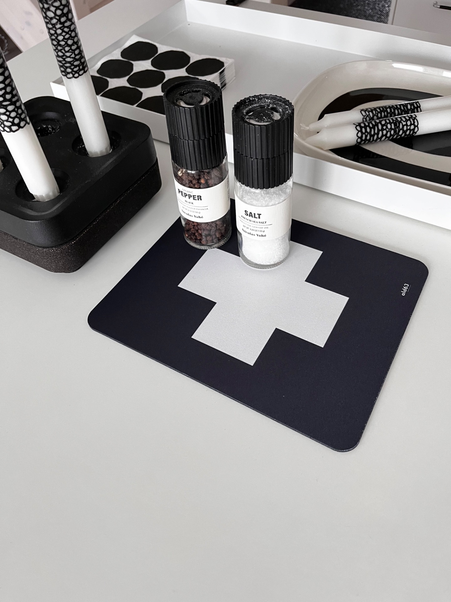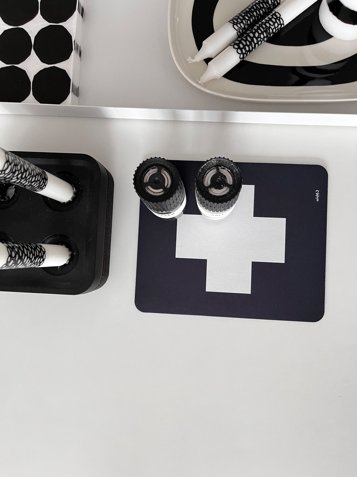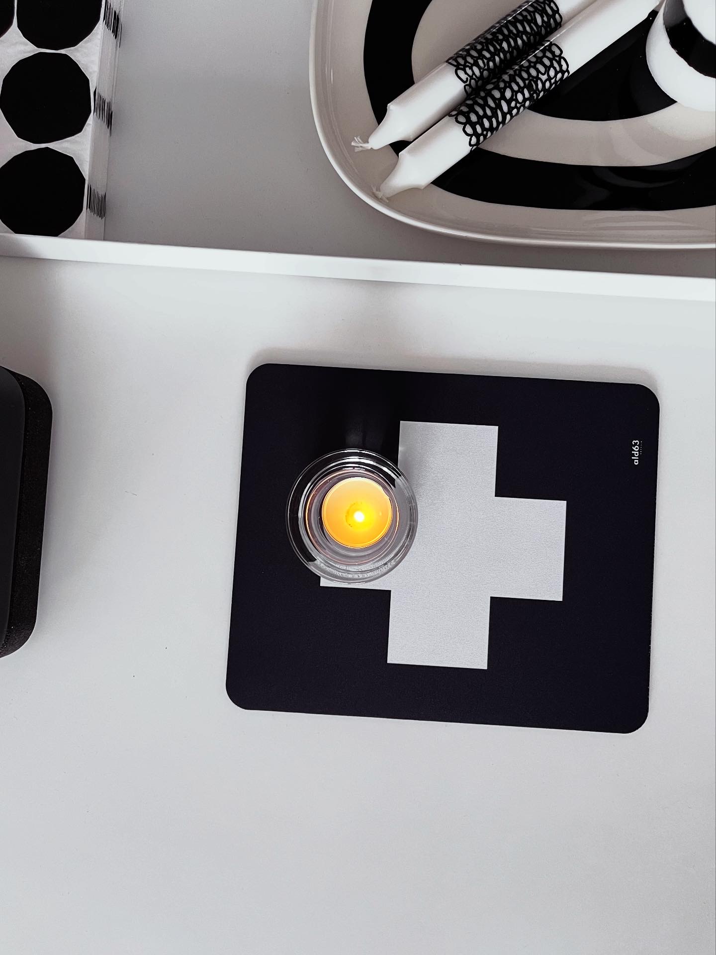 Styla upp arbetsplatsen hemma eller på jobbet. Denna musmatta ➕ har en matt och slät yta med gott om plats på. Tips! Använd den som ett fint underlägg till kryddor, bordsvatten etc Storl. ca 23x20x0,3cmFärg Svart/Vit