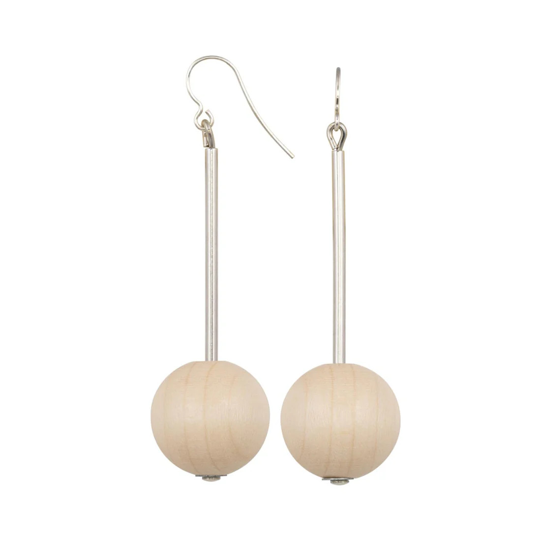 Diskreta, eleganta örhängen Elsa med handfärgad pärla av lönn. Färg Lackerat trä Material Lönn/Pläterad mässing/Silver Storl 6,5 cm Handgjorda i Finland