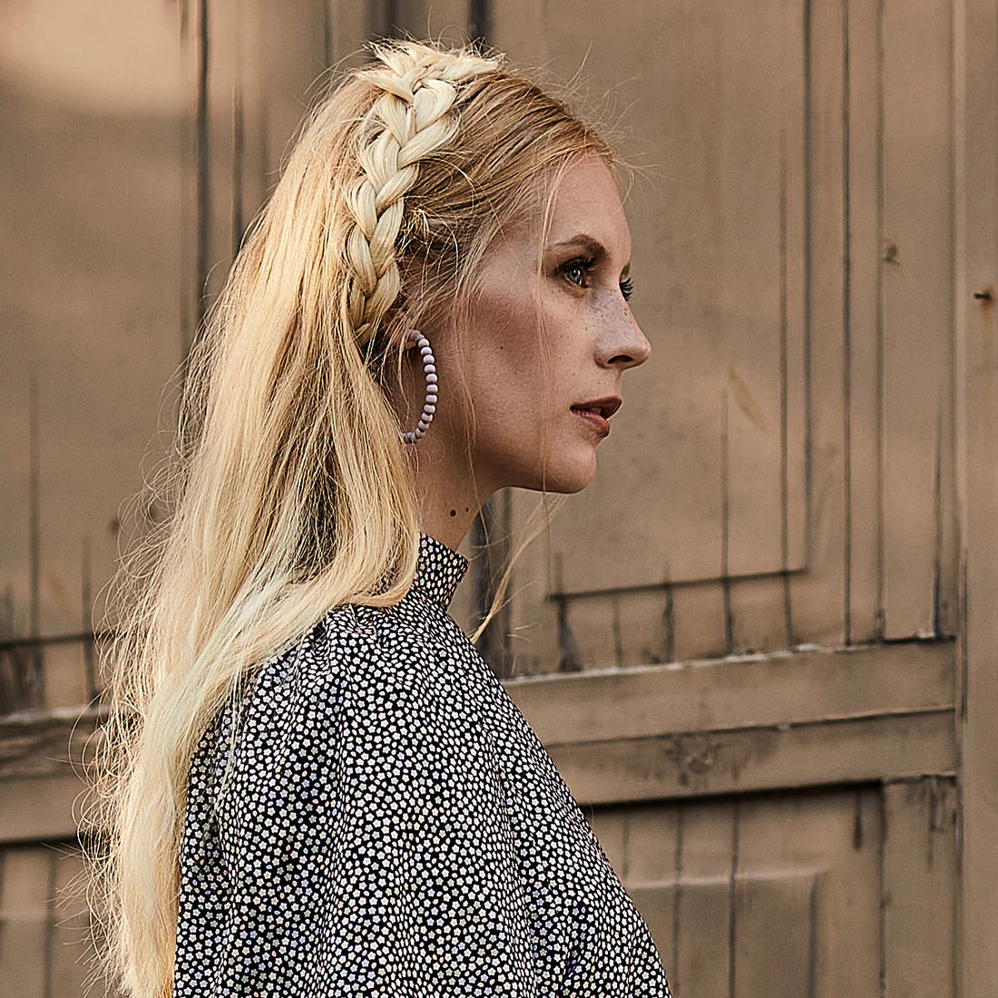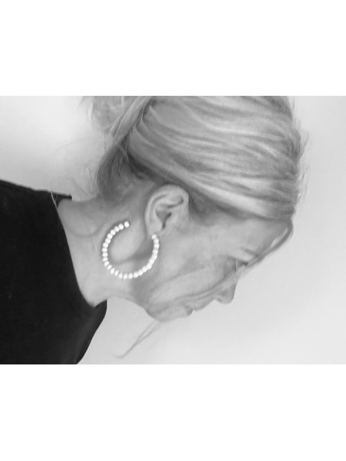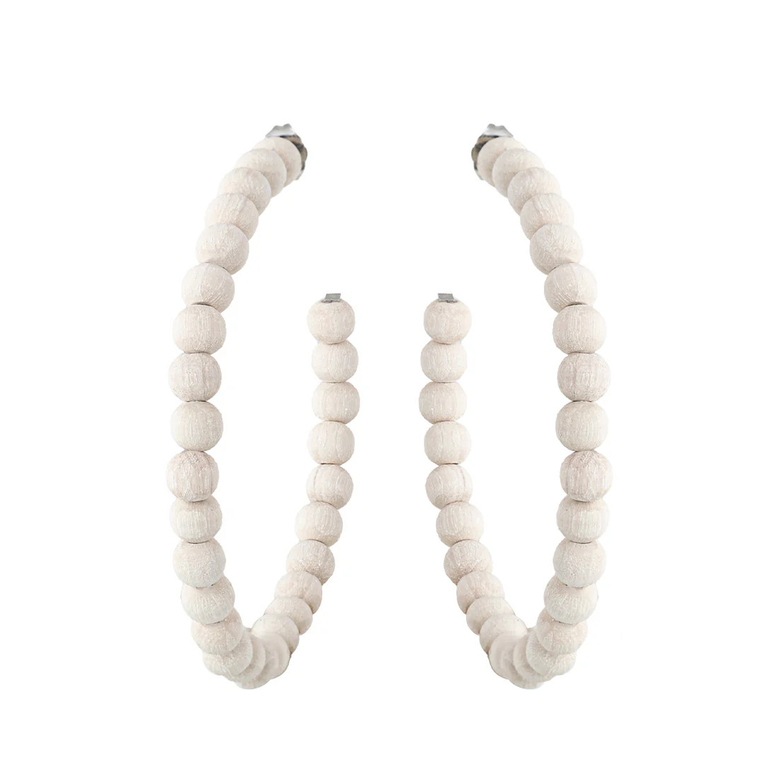 Stora Örhängen Sofia med handfärgade små träpärlor. Färg Naturvit Material Lönn/Smyckesmetall Storl Ø 6cm, Pärla 0,5cm Handgjord i Finland