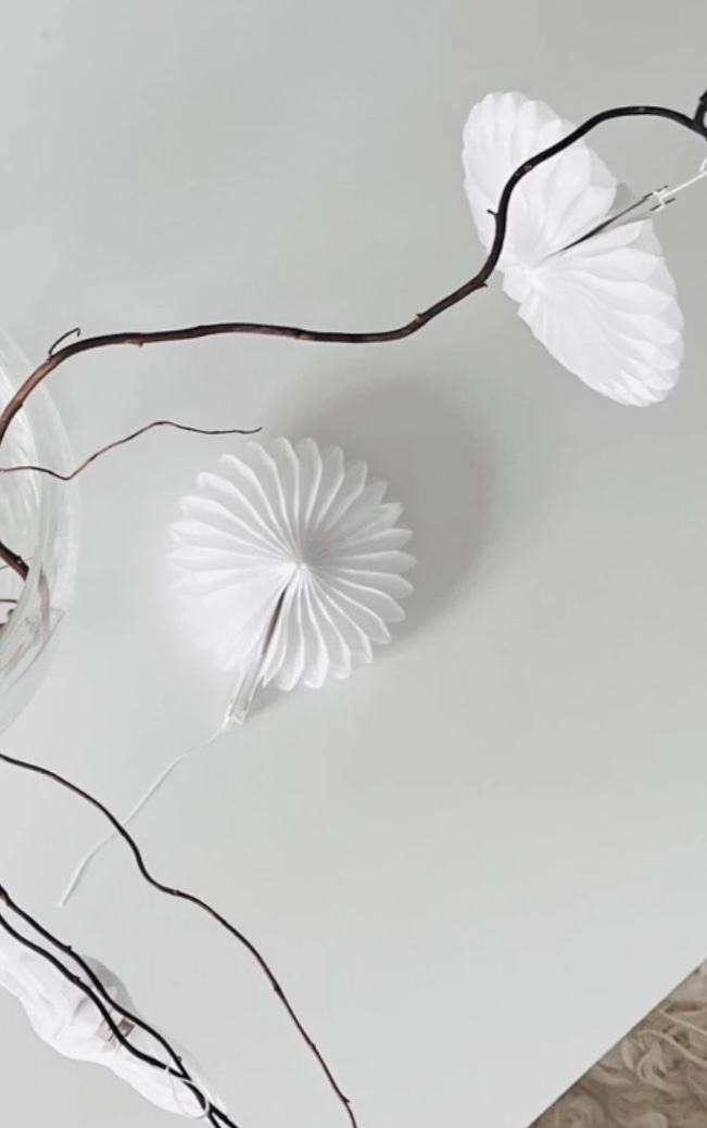Den här lilla Pappersstjärnan ligger i 5pack och är ett vackert hänge till granen eller som en fin detalj att dekorera med.Färg VitStorl 15cmMonteras enkelt genom att veckla ut den.
