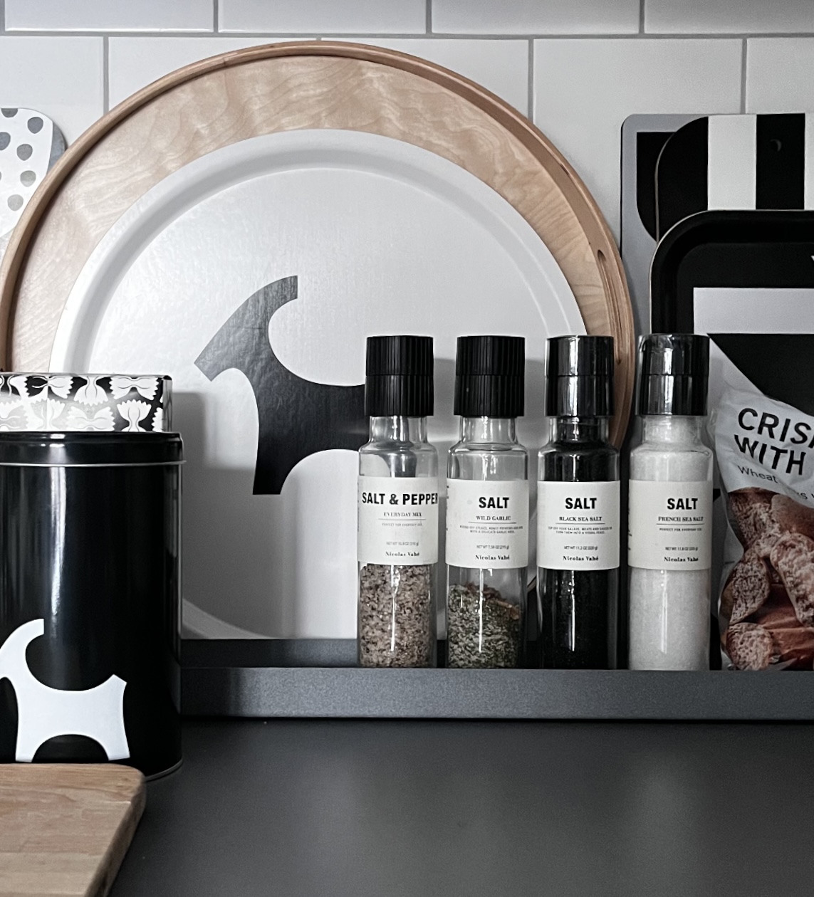 Kraftig Plåtburk med Rotor Designs klassiska julbockStorl H 17cm D 10,5cm Rymmer 0,5kg kaffeFärg Svart/Vit Tillverkad i Sverige