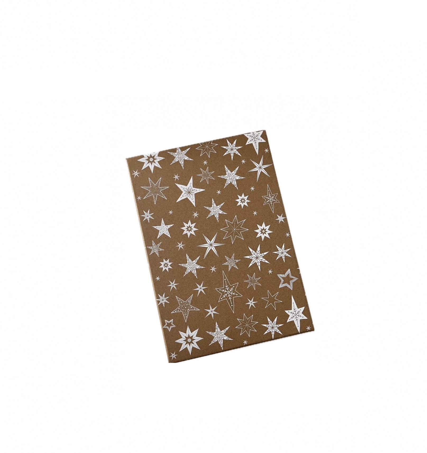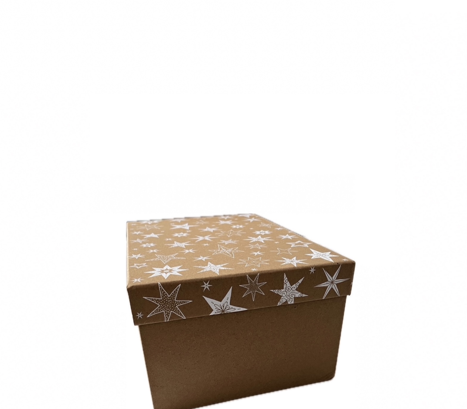 Presentlåda Jul med vita stjärnor, tillverkad i kraftig papp. Det här är den minsta av tre olika storl [se bilder]. Perfekt för dig som vill ha ett färdigt paket att fylla med klappar.