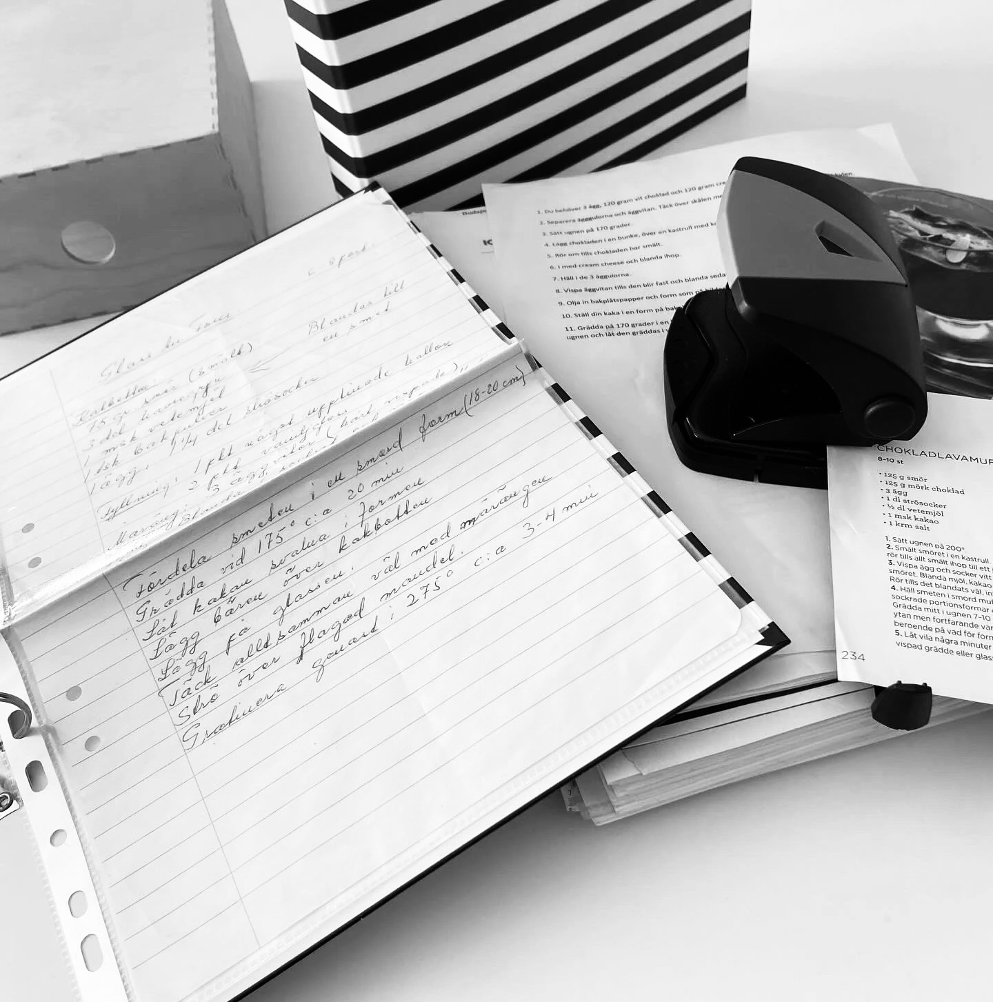Vanliga Plastfickor passar perfekt och är ett bra alternativ om den ska användas för recept etc