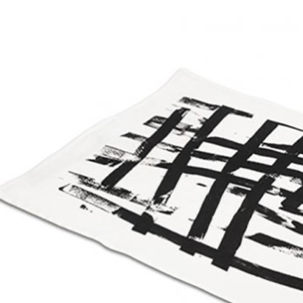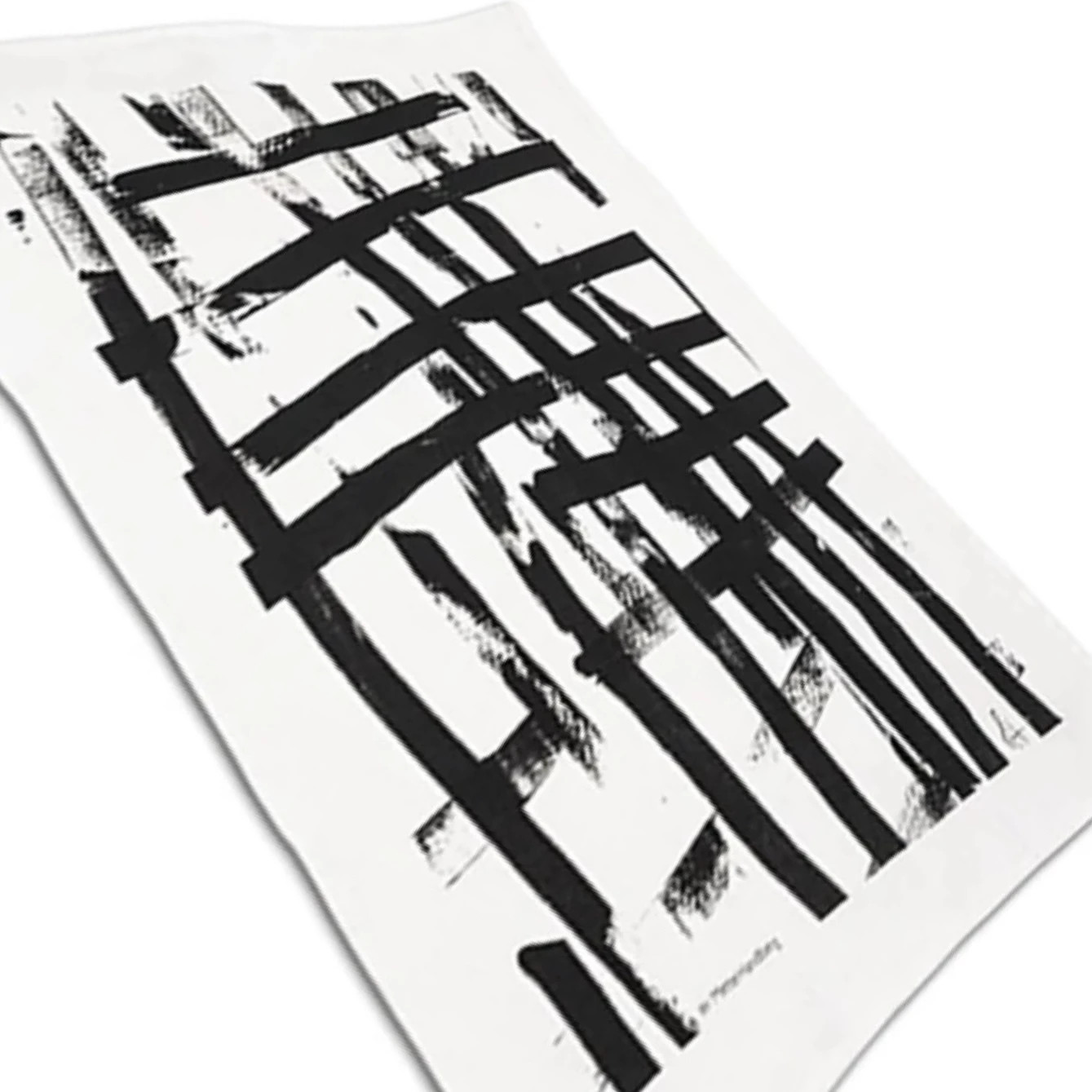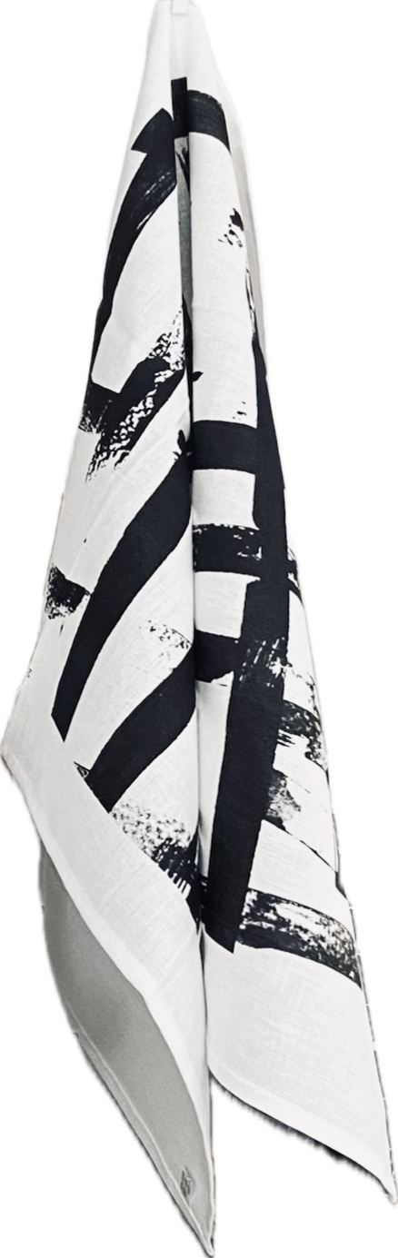 Screentryckt kökshandduk med vegetabiliska färgämnen.