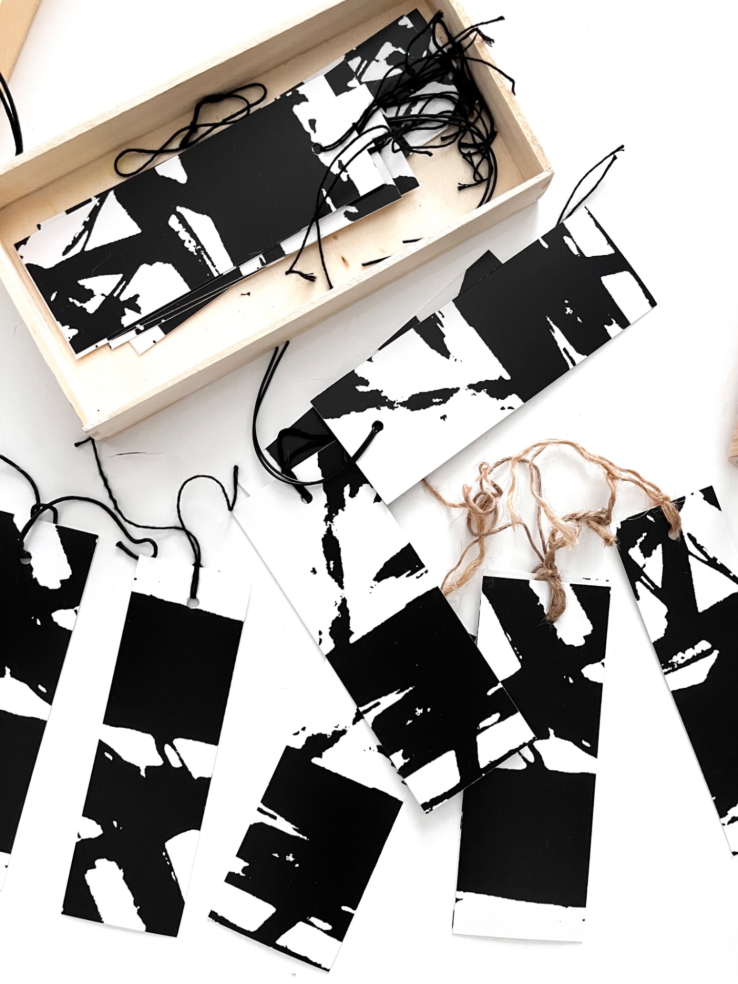 ALDdesignTag med abstrakt motiv som varierar på varje kort, tryckt på styvt papper Storl 5x14cm