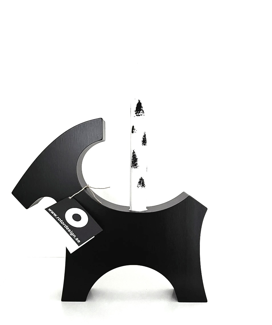 ROTOR DesignLjusstake i björk, avsedd för stearinljus.Ljushållare i metall med upphöjd kant.Höjd 23 cm Längd 25 cmFärg SvartTillverkad i Sverige