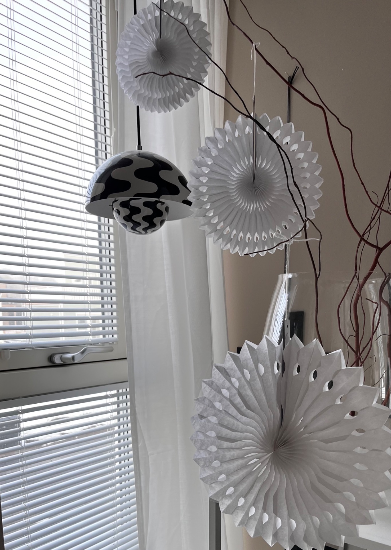 Snöflingor i krispigt papper . . Den här fina Pappersstjärnan ligger i 3 pack och är en fin detalj att dekorera med, häng dom ovanför julbordet eller som en grupp i fönstret. Enkel montering med hjälp av snöret som ingår.