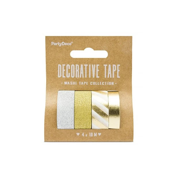4-pack Washitejp i guld och silvermix. Dekorera dina paket och kort med detta läckra tejp. . Glam glam. Består av 4 olika tejp i 2 bredder.Storl. 4x 10m